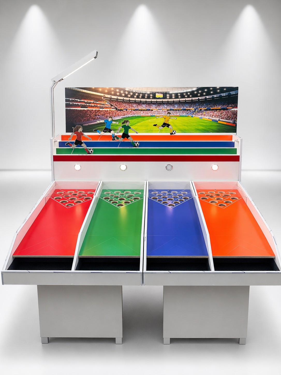 Das Fußball Derby mieten bedeutet spannende Duelle, mitfiebernde Zuschauer und jede Menge Spaß für Ihre Gäste. Vier Teilnehmer treten gleichzeitig gegeneinander an und bewegen ihre Spieler Schritt für Schritt Richtung Tor. Ziel ist es, möglichst viele Treffer zu erzielen und das Spiel für sich zu entscheiden. Jede Runde sorgt für Nervenkitzel, denn oft entscheiden nur wenige Punkte über Sieg oder Niederlage.