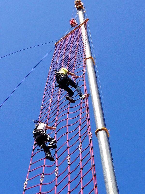 Menschen mit Höhenangst sollten sich das spektakuläre Kletternetz nur vom Boden aus anschauen. Alle anderen können den Aufstieg wagen. Das Risiko hält sich dabei dank professioneller Sicherheitsausrüstung in Grenzen. Der Nervenkitzel ist jedoch grenzenlos, wenn man das Netz – quasi frei schwebend – empor steigt.